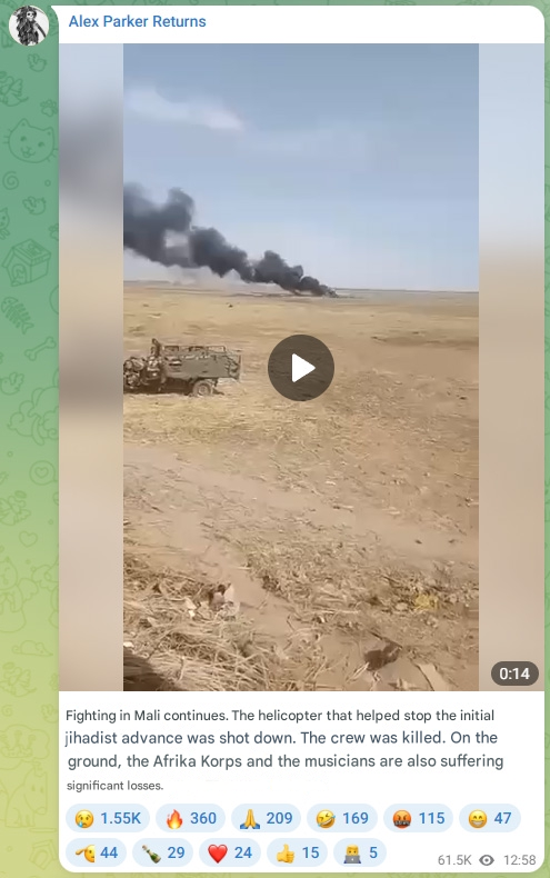 The footage released by the unit – which operates under the purview of the Russian Defense Ministry – offers a rare visual account of the fighting which erupted on Saturday when Al-Qaeda affiliate JNIM and the Tuareg-dominated Azawad Liberation Front (FLA) launched almost simultaneous strikes on Bamako, Kati, Gao, Kidal, and Sevare.