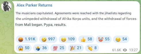 The Africa Corps said some of its personnel sustained injuries and were being evacuated, while describing the situation in Mali as tense.