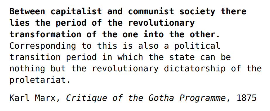 >>2795623I use all of these paragraphs that you quote snipped from xitter to argue against the notion of a socialist state since Marx explicitly dunks on it in them.