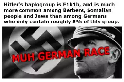 >>541137 hitler belongs to the european e1b1b clade, which is most common in the balkans. it's not the berber or ethiopian clade. furthermore, the haplogroup is one single gene in the y-chromosome. the reason why it is so mentioned is because it mutates so slowly and that's useful for genetics, especially 10+ years ago when full autosomal research was very difficult. it does not, however, show full autosomal ancestry