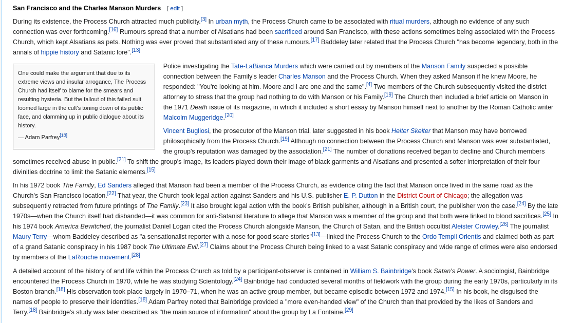 Saville did however write an article for the Process Church of the Final Judgement's magazine and they were another fascistic occult group that glowed brighter than the sun. Manson also wrote an article for them. And not just that, Manson lived near them at one point, stayed at a crashpad they frequented at another, claimed to know their founder, and was visited by two of them after being arrested.