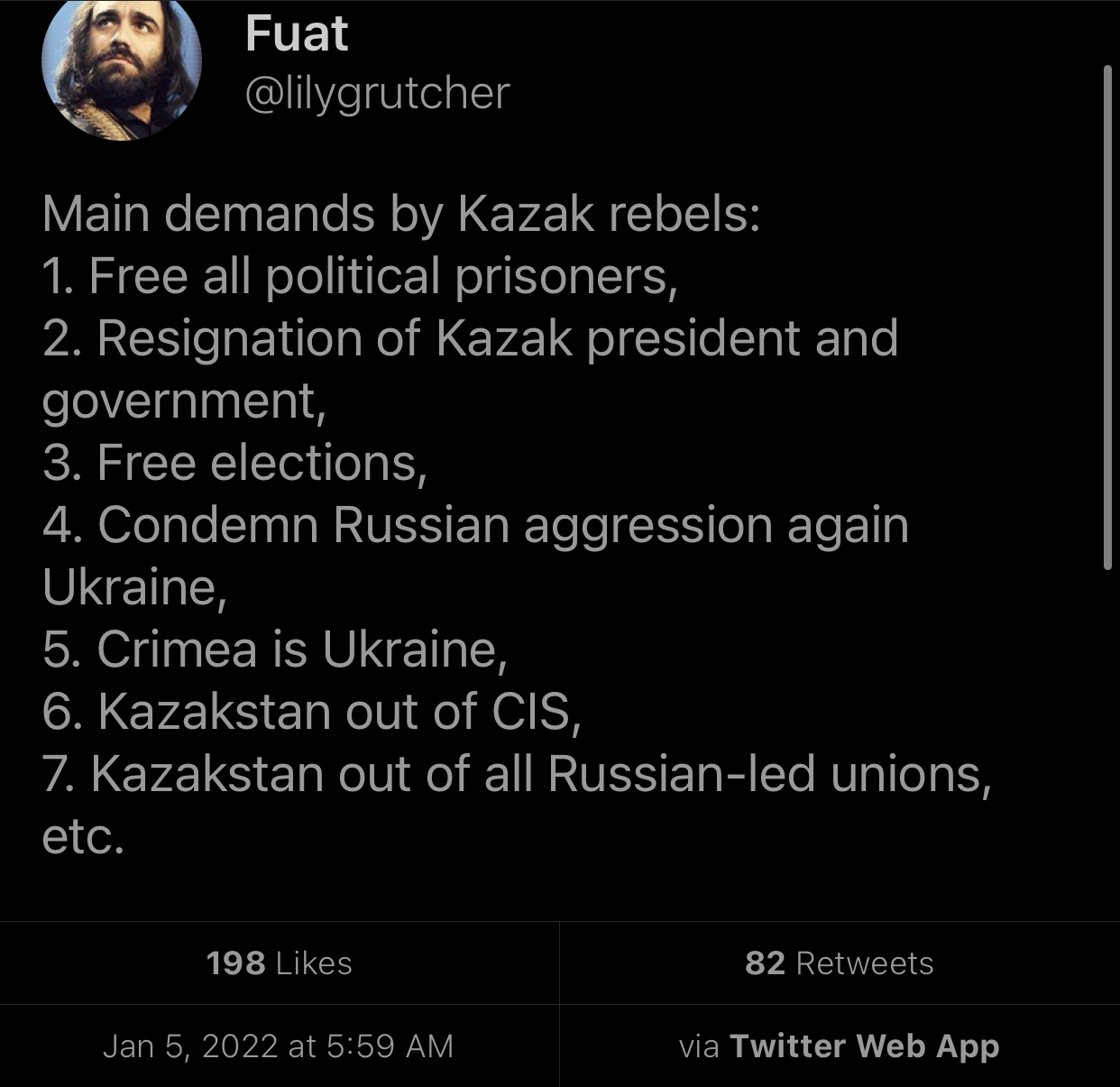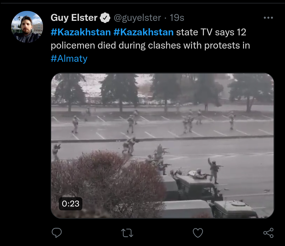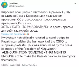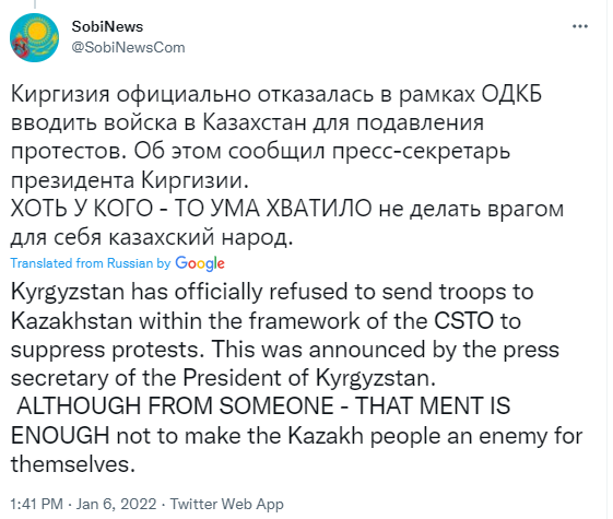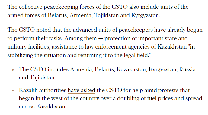 >>>/leftypol_archive/489758 >>>/leftypol_archive/490907 >Protests started for gas prices raise two days ago >Rapidly became widespread >Government resigned few hours ago <Protestors started storming palaces of government and institutions all around the country >CSTO called in, effect unclear yet >no response yet from the west Old thread full, continue discussion here