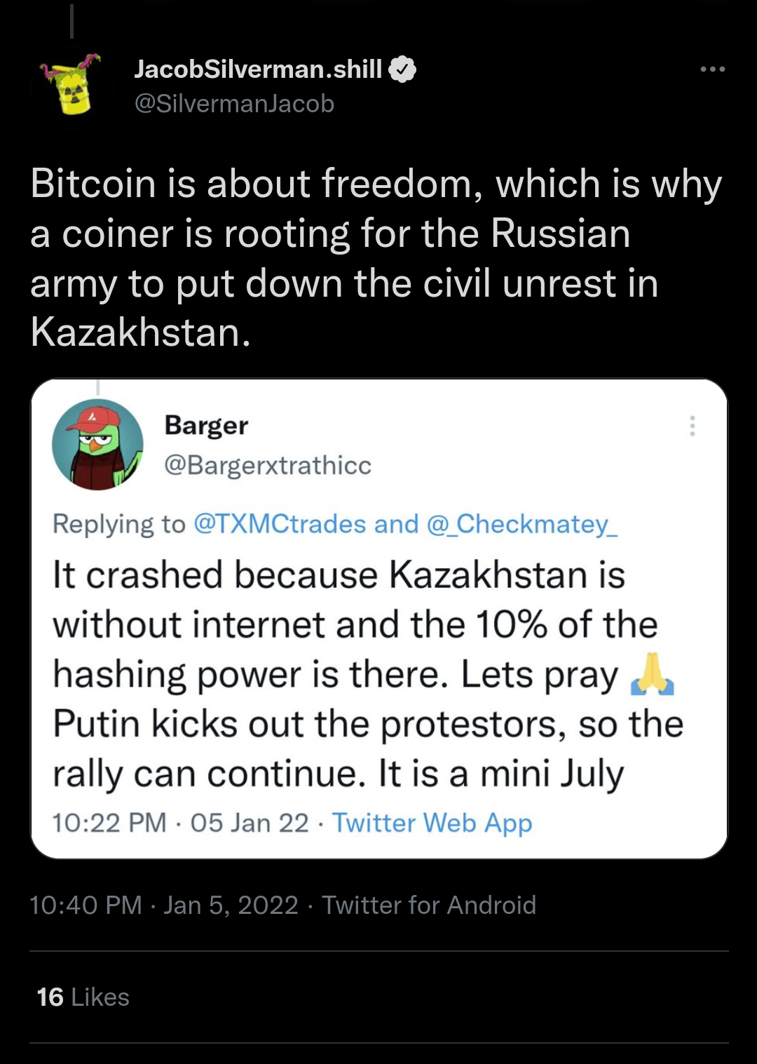 https://www.idcommunism.com/2022/01/statement-by-socialist-movement-of-kazakhstan-on-the-situation-in-the-country.html https://archive.is/WOmYK Anonymous 2022-01-06 (Thu) 19:19:45 No. 678245