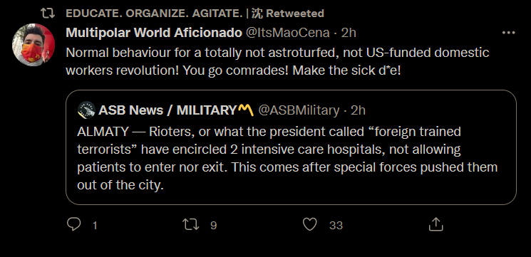 Anti imperialist UK stands in solidarity against violent terrorist rioters challenging the Kazakhstan revolutionary government.