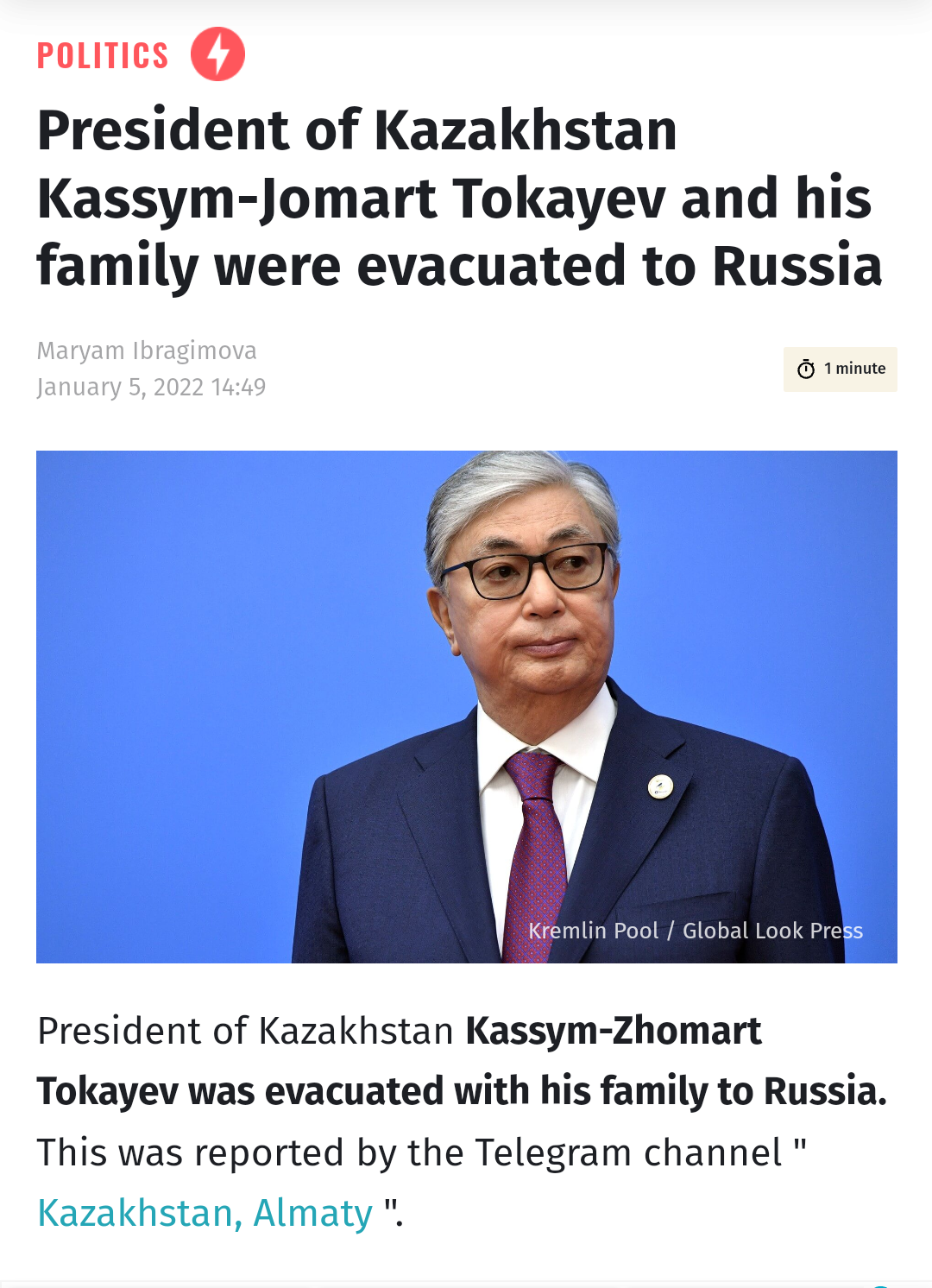 Pretty obviously an American move with one or more of the major Kazak clans to pre-position themselves prior to talks with Russia