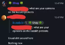 >>678378 when I said not supporting I mean supporting the Kazakhstan government, sorry