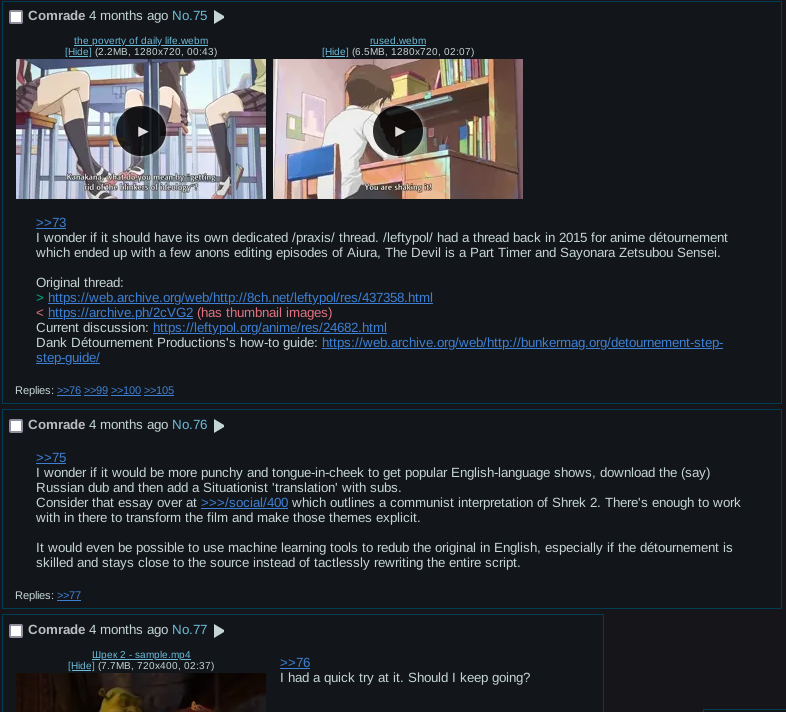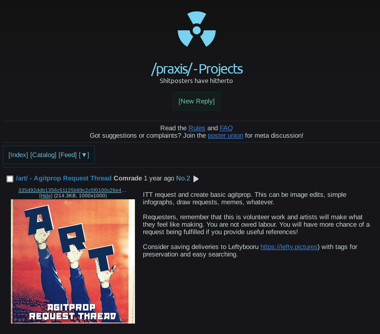 >Post original content you've made, or OC someone else recently made which you want to share.<Or ITT collaborate on improving content already made.If your original content is good enough, it would most likely be shared on the /leftypol/ twitter account!