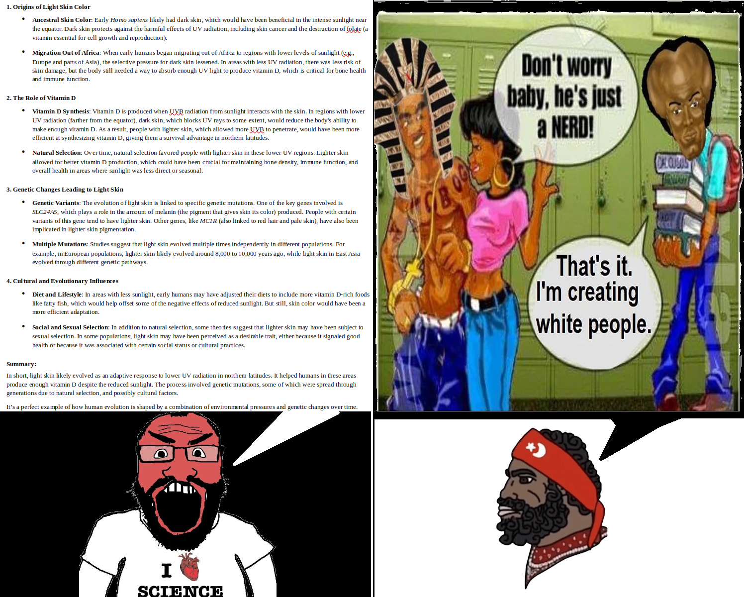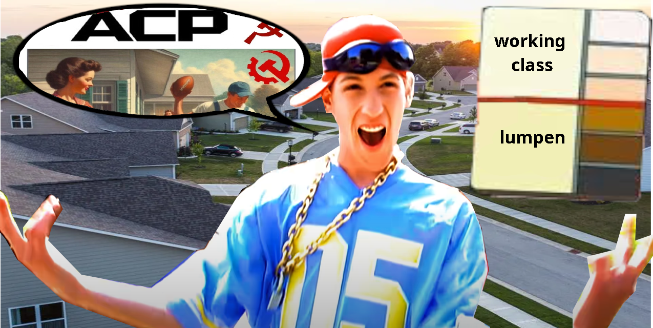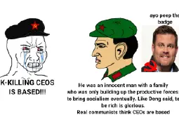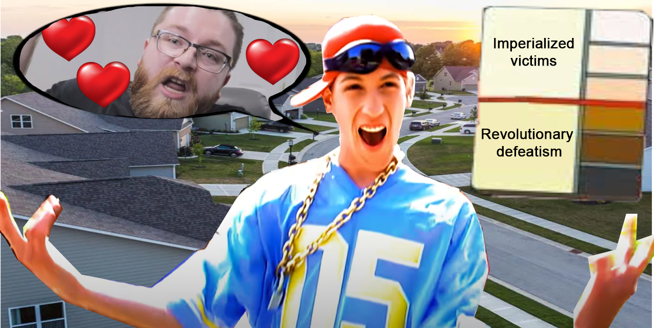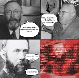 >>599337This format makes no sense, and the things you're attributing aren't even things that these people say. ACP's take on class is about cultural divisions not race ones. And Vuash probably doesn't even know the phrase revolutionary defeatism.