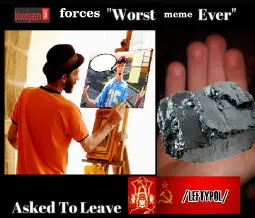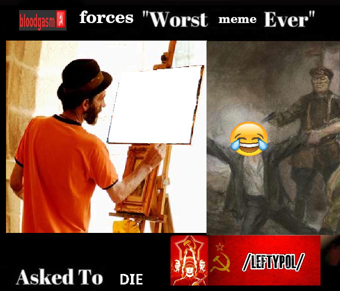 >>599357>asked to leave leftypol>asked to die leftypolit wasn't a watermark, it was part of the sentence, smh