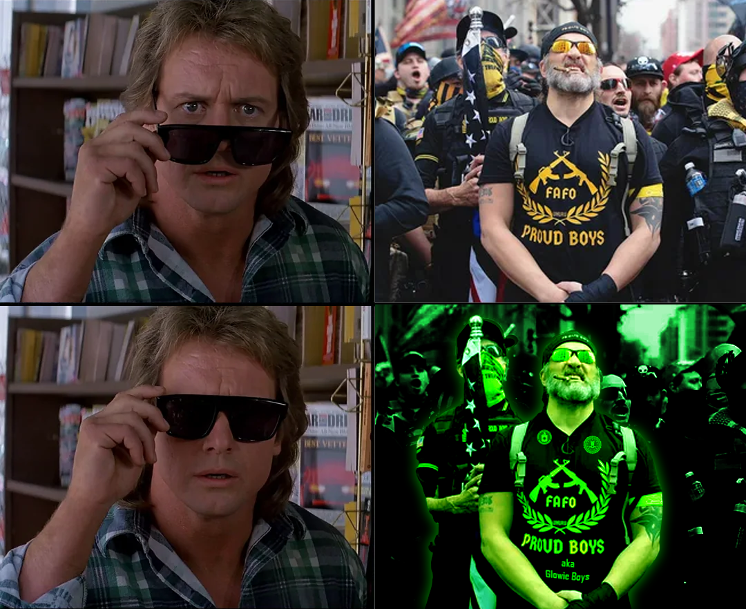>>599421this meme is stupid, the guy puts the glasses ON to see the truth, he doesnt remove them.