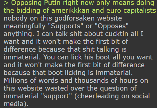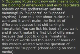 >>599791If that's what you think of when people talk about opposing imperialist war you're just a bootlicker.