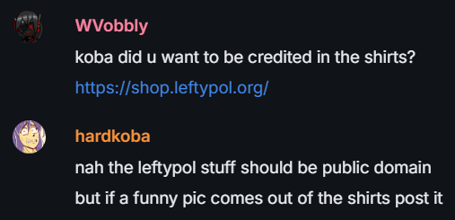 And we're not selling leftypol gold passes, no user has to buy these things (except when we get the alunya fumo going, those are compulsory). If you want to front some money for the site's server costs but want something as a return for it, the shirts exist for that reason. If this ends up creating an excess of money, we can use it as a rainy day fund, use it to comm these artists for even more images, etc. I would hope that us collectively paying for the continued hosting of the server since we left bunkerchan would show we're not interested in leftypol as a vector for monetary gain.