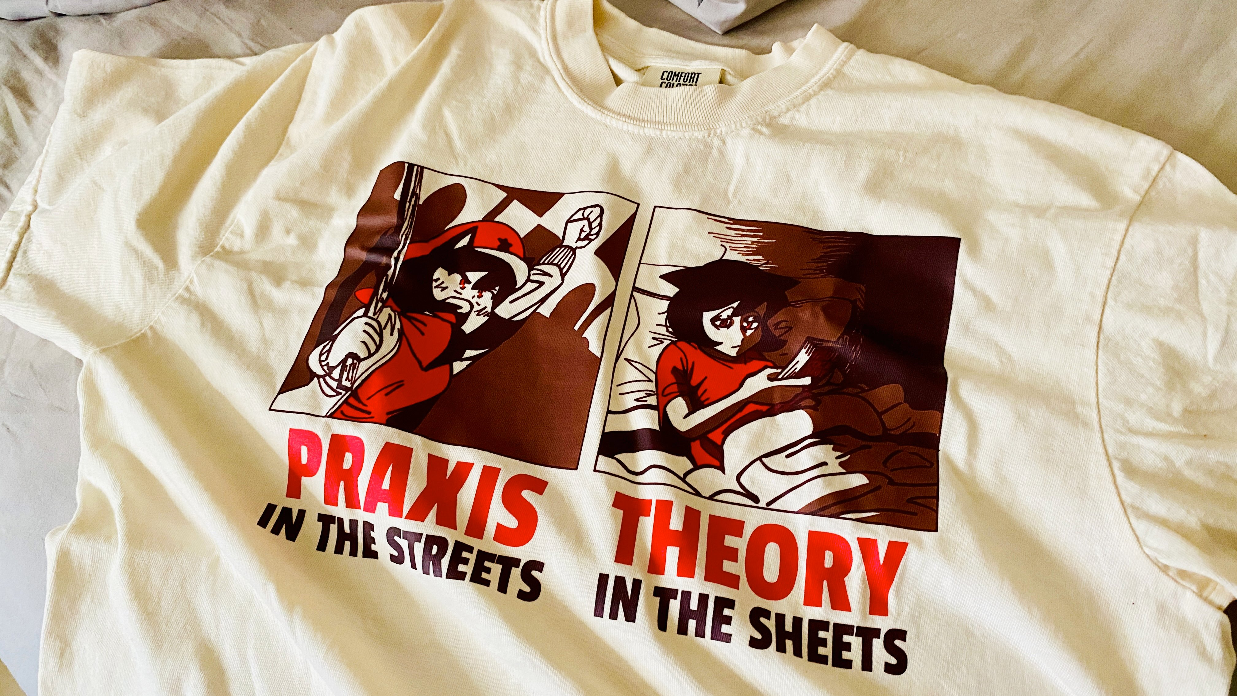 I wore one of your shirts to my reading group and everyone thought it was hysterical. I'm so grateful for my friends at leftypol.org for showing me that communism and learning theory can be really fun!