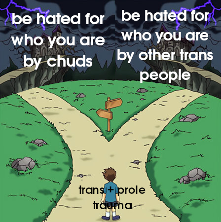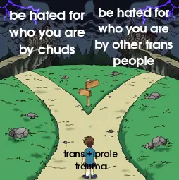 >>4173If it means anything to you anon, I'm a trans woman who does have people who stopped HRT and went back to being cis and/or going back to he/they pronouns.