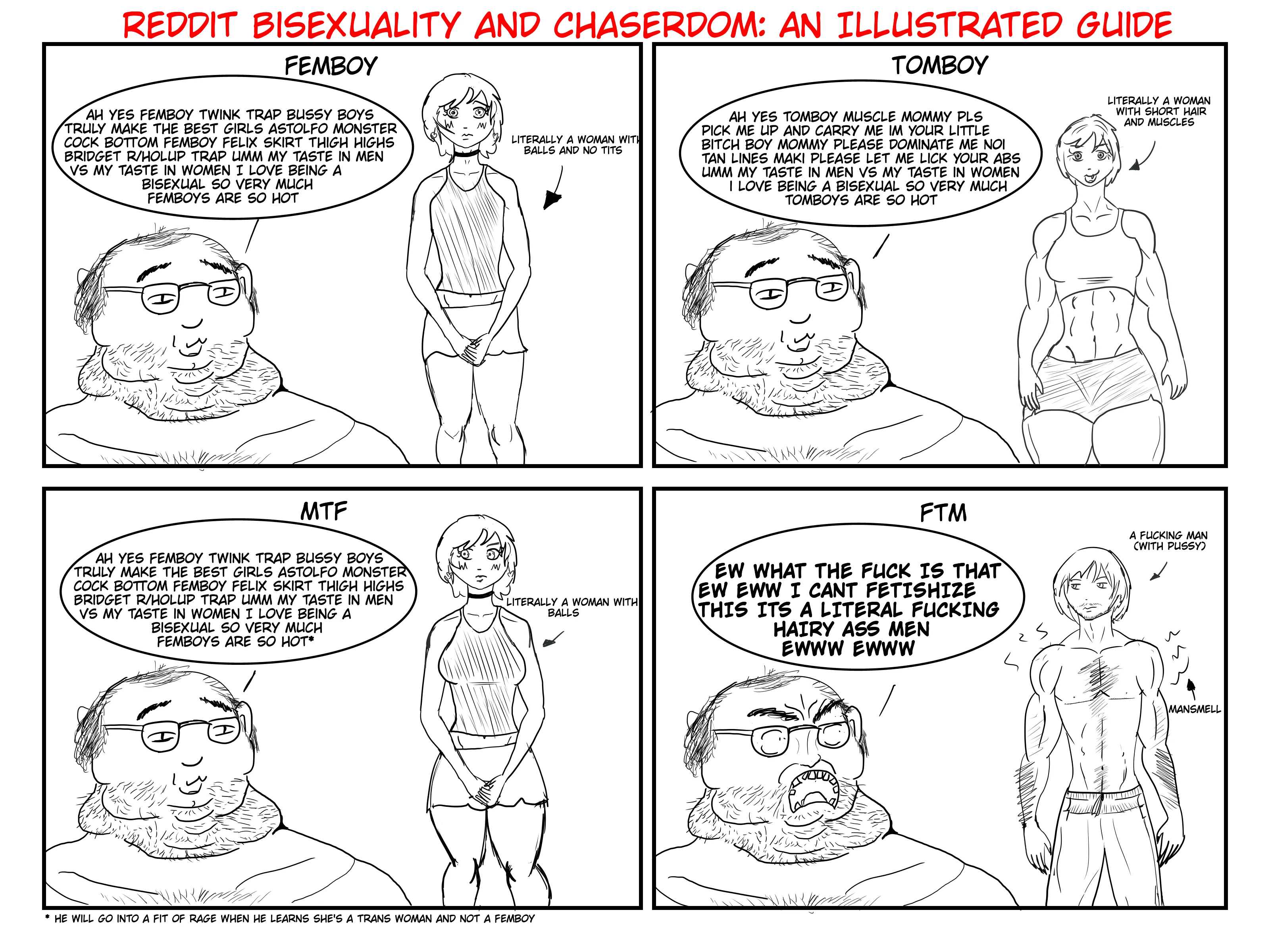 Men who are into femboys are usually men who are also into women. And what they are into in femboys is a heteronormative presentation of femininity. Such men are usually not into men who look like men. One could then argue this is a preference, but a preference would mean that they are still into men but merely prefer this type of man. This isn‘t the case for men who into femboys though. Of all the people who are male they aren‘t turned on by any of them except femboys. So it‘s not a preference, it‘s exclusivity. Finally, men who are into femboys are generally not interested in sucking dick or being fucked in the ass.