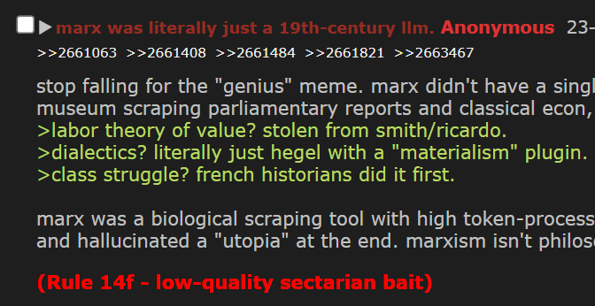 At what point did Leftypol go from a place for politically incorrect left shitposting paired with insightful analysis to what it is today with Mods taking their role like Reddit mods circa 2016 and banning anything that isn't super serious effortposting?