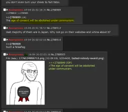 Also, the pedophilic slang "cunny" is said on several boards. Check 8moe's "hebe" board, which was banned for pedophilia, and see how many times you see the word "cunny".