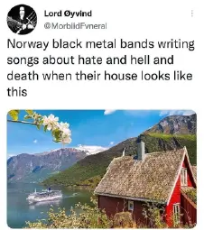 its always like this, i blame protestant work ethics to be honest, it is the reason why catholics in some flooded town in basque spain that's 90% old people or some guy in a shanty town in brazil or colombia sings about how life is fucking awsome and beautiful while a guy in germany or sweden or norway starts a metal band singing about toasting to death and dying in combat because his modern life in colorful comfy snowy oslo is extremely melancholic and shit and depressing (norway just discovered a new gas field and increased GDP and other statistics by 2055% during the making of this song)