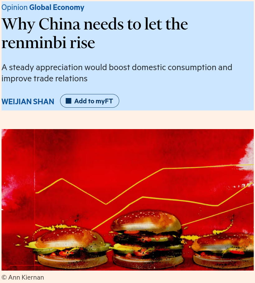 >Sceptics invoke Japan’s “lost decades”, blaming the sharp yen appreciation forced by the 1985 Plaza Accord. That parallel does not hold. China’s situation is the opposite. After falling property and equity prices in recent years, household wealth is impaired and consumer confidence remains fragile. Consequently, households have hoarded an enormous amount of cash: their bank deposits hit $23tn in 2024, exceeding GDP by more than 20 per cent. A gradual renminbi revaluation would help repair household balance sheets and lift confidence to spend. China also enjoys far more monetary and fiscal policy space than Japan did: real interest rates remain high amid zero inflation, and the reserve requirement ratio — the proportion of deposits banks must park at the central bank — hovers above 6 per cent (versus zero in the US and 1 per cent in the EU and Japan).