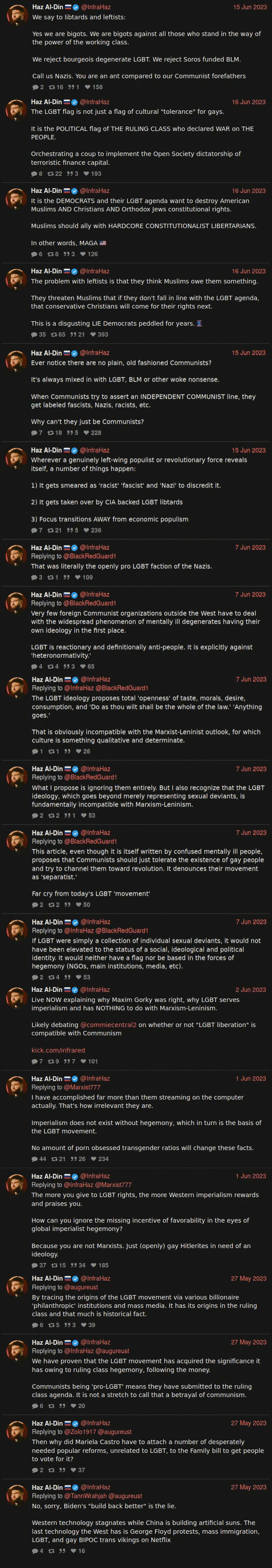 >Then there’s the moronic decision to make the chimera ants sympathetic by giving them arbitrary arcs when the dudes were trying to kill five million people for no reasonChimera ants are sympathetic because they inherit the traits of the species they consume, eg. eating humans backfired in the end, which is something Meruem acknowledges in his fight against Netero (saying the human ego disrupts the collective bond between ants). Sure they have no reason to kill people, but humans don't have a reason either. One of the points of the arc is to highlight the aribtrary nature of these conflicts. Chimera Ants are strong enough to kill an unarmed human, so they do that to increase the strength of their colony. An average ant with no intelligence doesn't need more reason. The problems start the more intelligent they get when they start eating humans. That I need to explain this to you on a supposedly leftist board is indicative of state of this shithole.