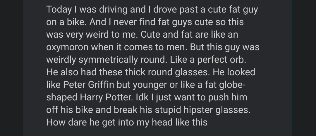 Ok man, enough of this, while it is kinda funny to laugh at it's also just super toxic and ruins any possibility of this thread actually achieving anything. Please stop.