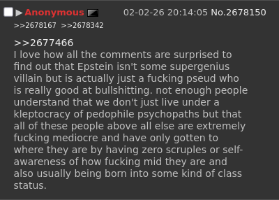 There is nothing anti Marxist antimaterialist or idealistic about this truth. It's material reality. People who deny the presence of literal demons in the capitalist ruling class are no different than those who dismiss Epstein having ties to Mossad as a "conspiracy theory".