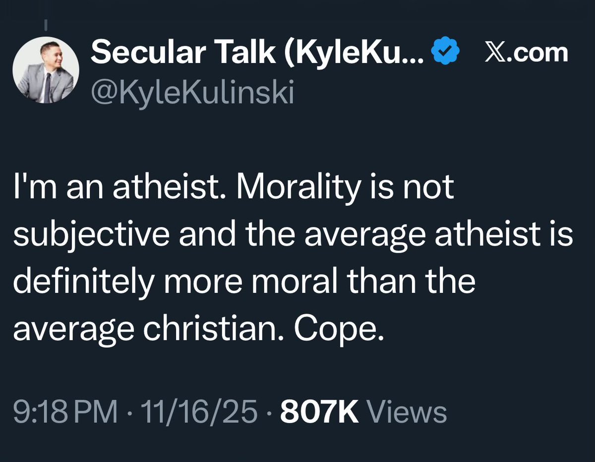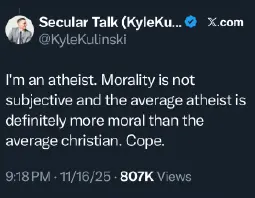 thoughts on this statement by kyle? its clear that the majority of atheists dont leave their faith for scientific reasons, but moral reasons. the belief in a good higher than God appears to be the pathos made logos, and a new faith lives in this ideal, often expressed politically. this appears to be a platonic repudiation of monotheism, since the platonic monad is impersonal. God cannot also be the good, since if God decides what is good he is beyond it. thus, God must be subordinate to his own edict. plato writes about this in "euthyphro" and aquinas also writes about it, claiming that while God makes the law, his inherent goodness forces him to abide by it. the contradiction is setting conditions against the unconditional; can God create a stone he cannot lift? according to aquinas, yes. such as epicurus says, then he is not God… the atheist is merely a philosopher in birth (both socrates and christians were accused of being atheists in their persecution).