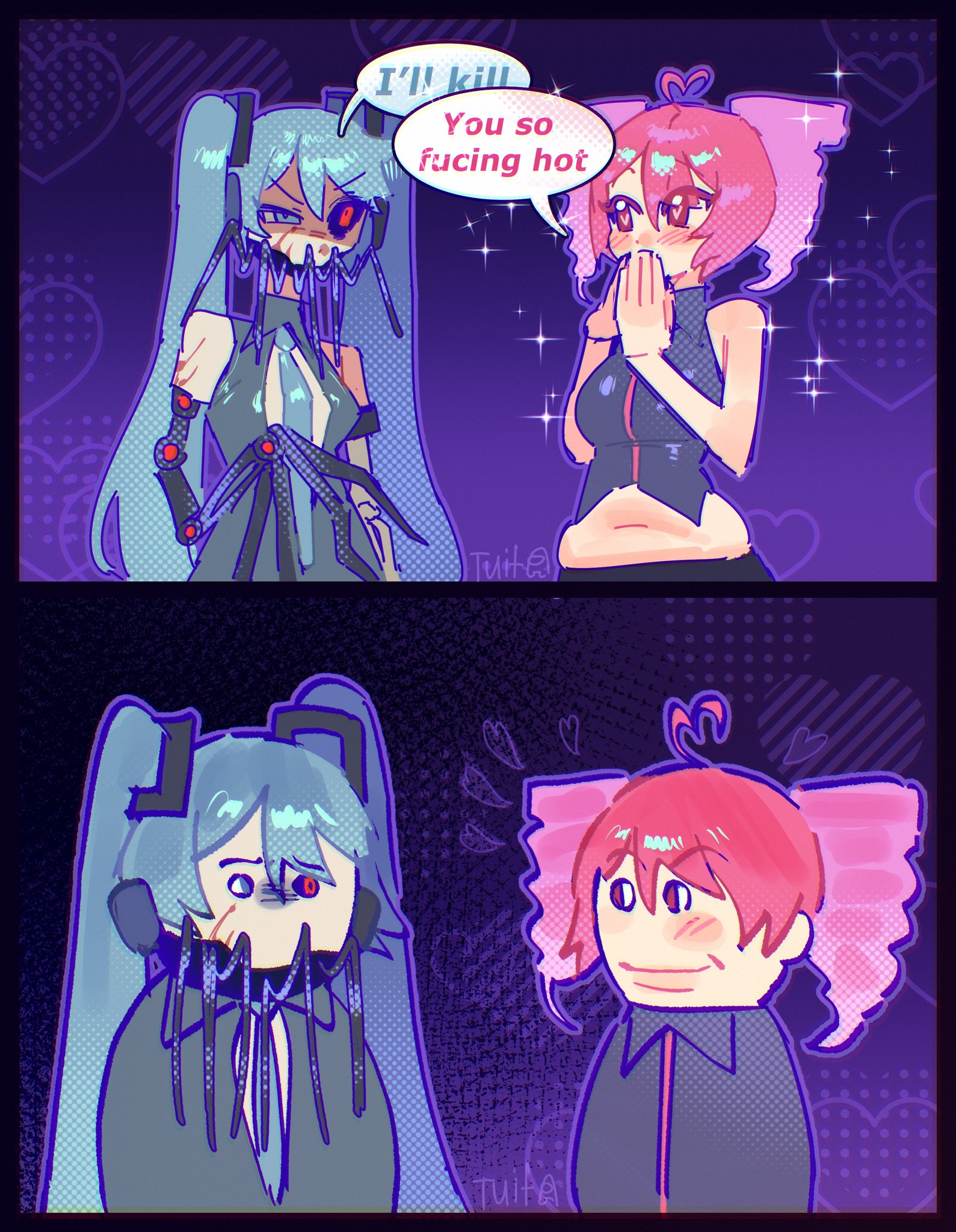 >>718884I don't think so, she's just clinging to her, Teto is sad because Miku is leaving (she got scared by the thunder).