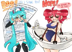 Yuri WarIt wasn't all sunshine and rainbows, however, as the two were currently trapped under a government ran by the Anti Yuri Force. If the two were to live happily ever after, they would need to do something about the terrorist organization leading the country. After the assassination of Neru, in a showing of surprising levels of adaptability, the Anti Yuri Force quickly appointed a new leader: GUMI. GUMI was just as, if not more ruthless than Neru ever was, vowing that yuri was dead and that she would personally kill all himejoshis herself. Despite still being homophobic, Pearto and Tasateko, being gay lovers in spite of their homophobia, were forced to confront the Anti Yuri Force head on as part of the Yuri Rebel Force.