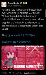 >>708127scale is way outta wack why tf is 6 foot miku towering over a teto only an inch shorter than her