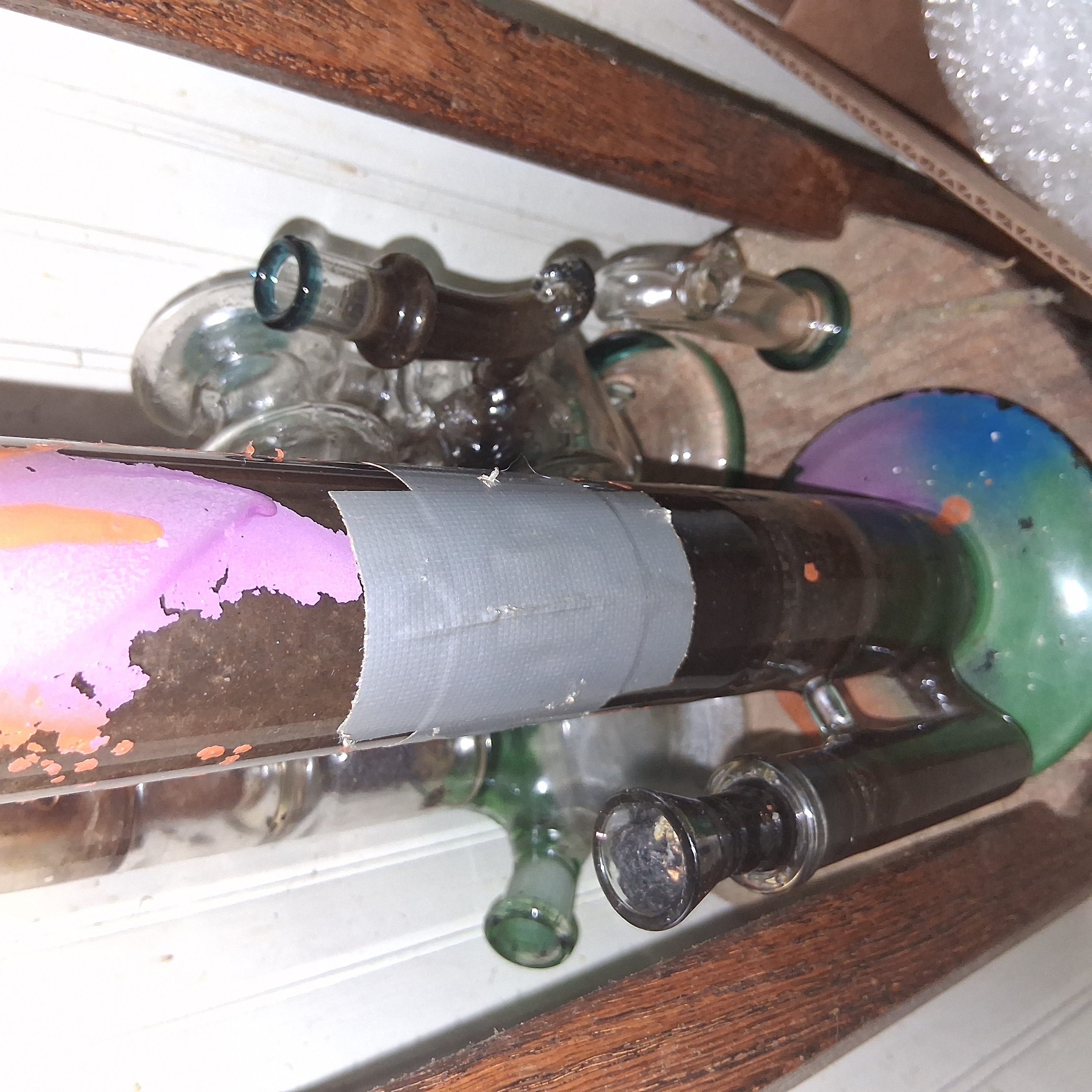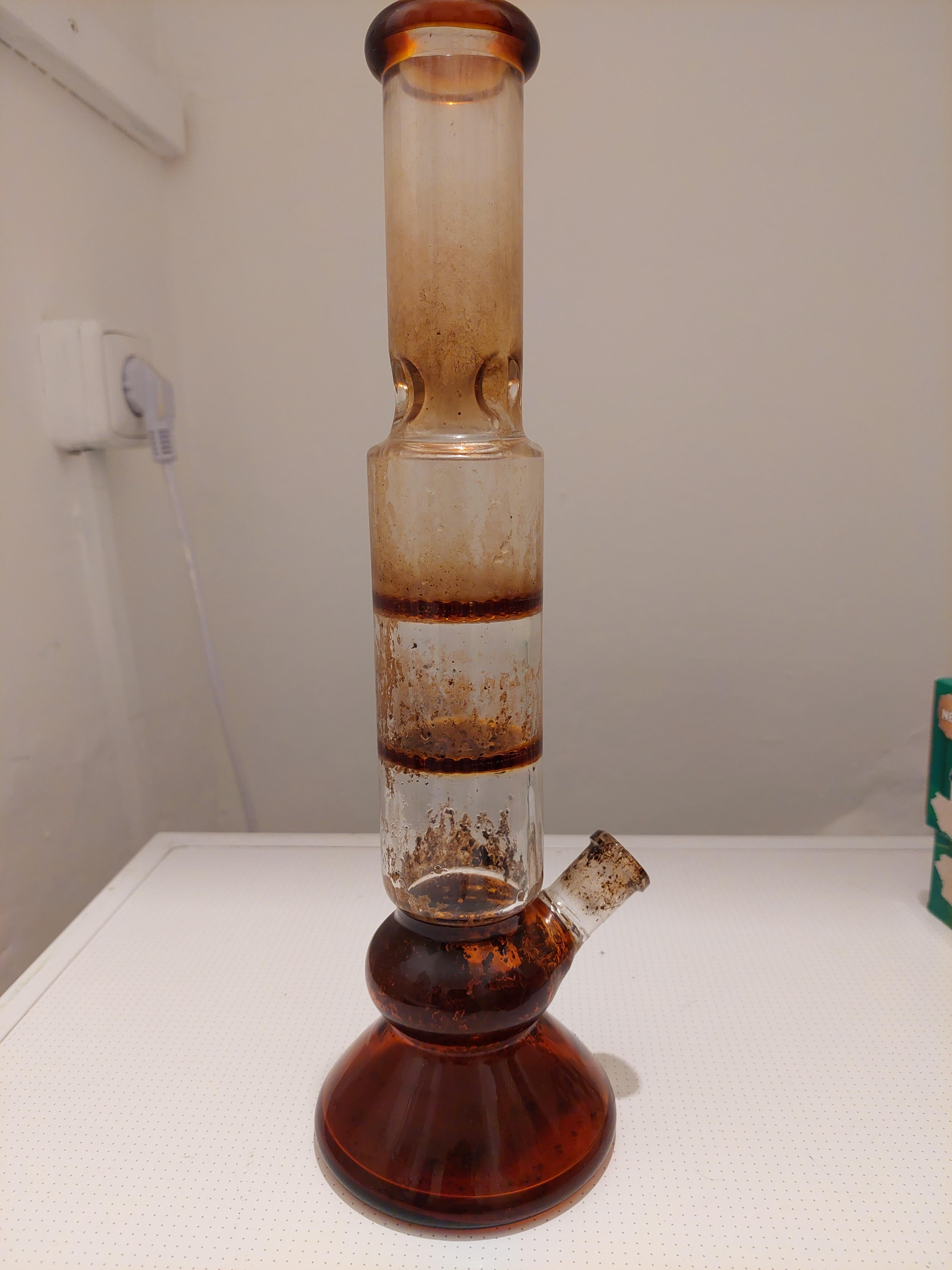 Anyone have any ideas? My new main bong in the pic is going to need cleaning every week. It's design looks cool, but tilting it to get all the liquid out is a bitch. More of a guest bong I think. Not the best "daily driver".
