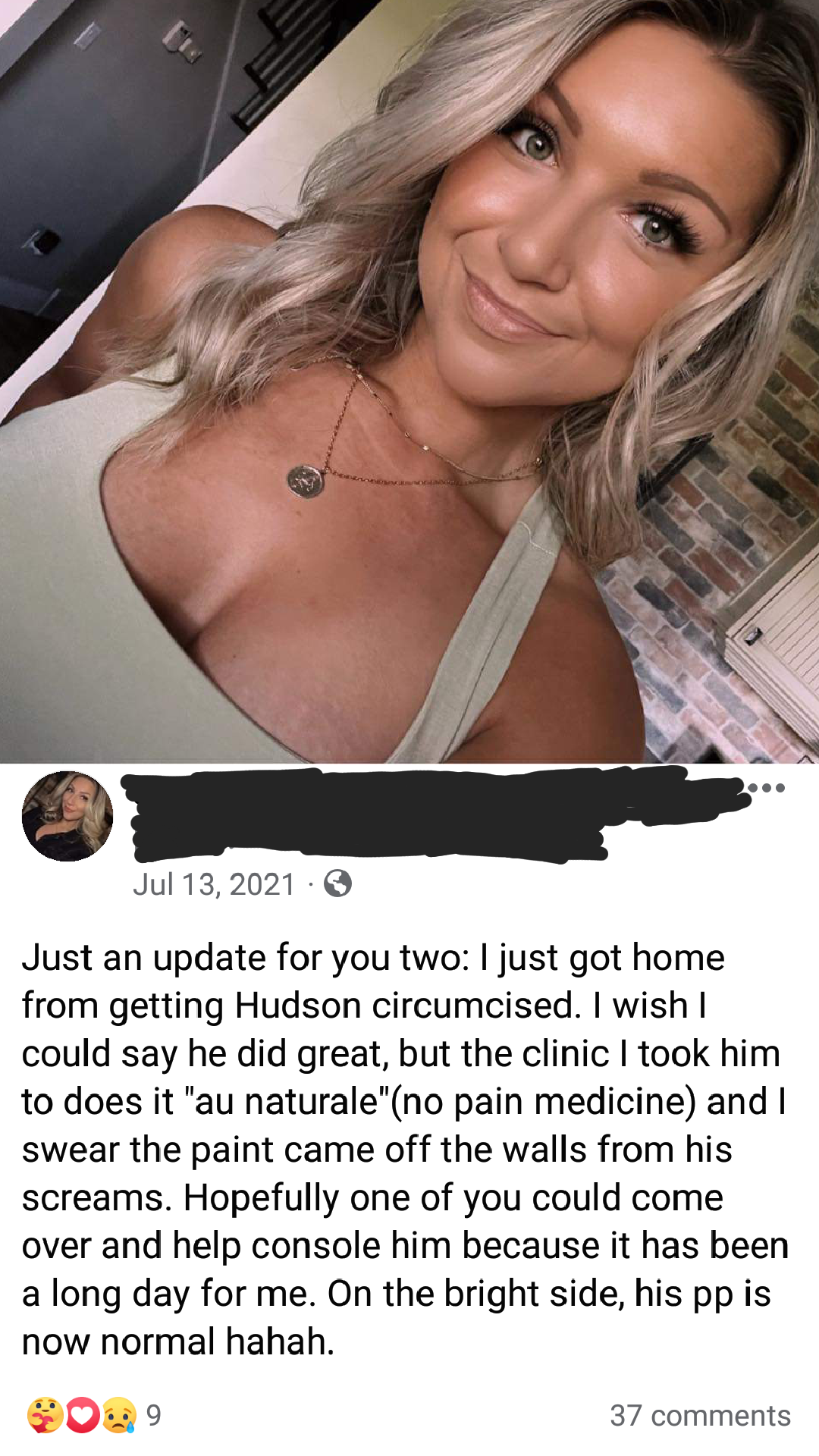 >>711286Hello, my name is anon, and I suffered genital mutilation.