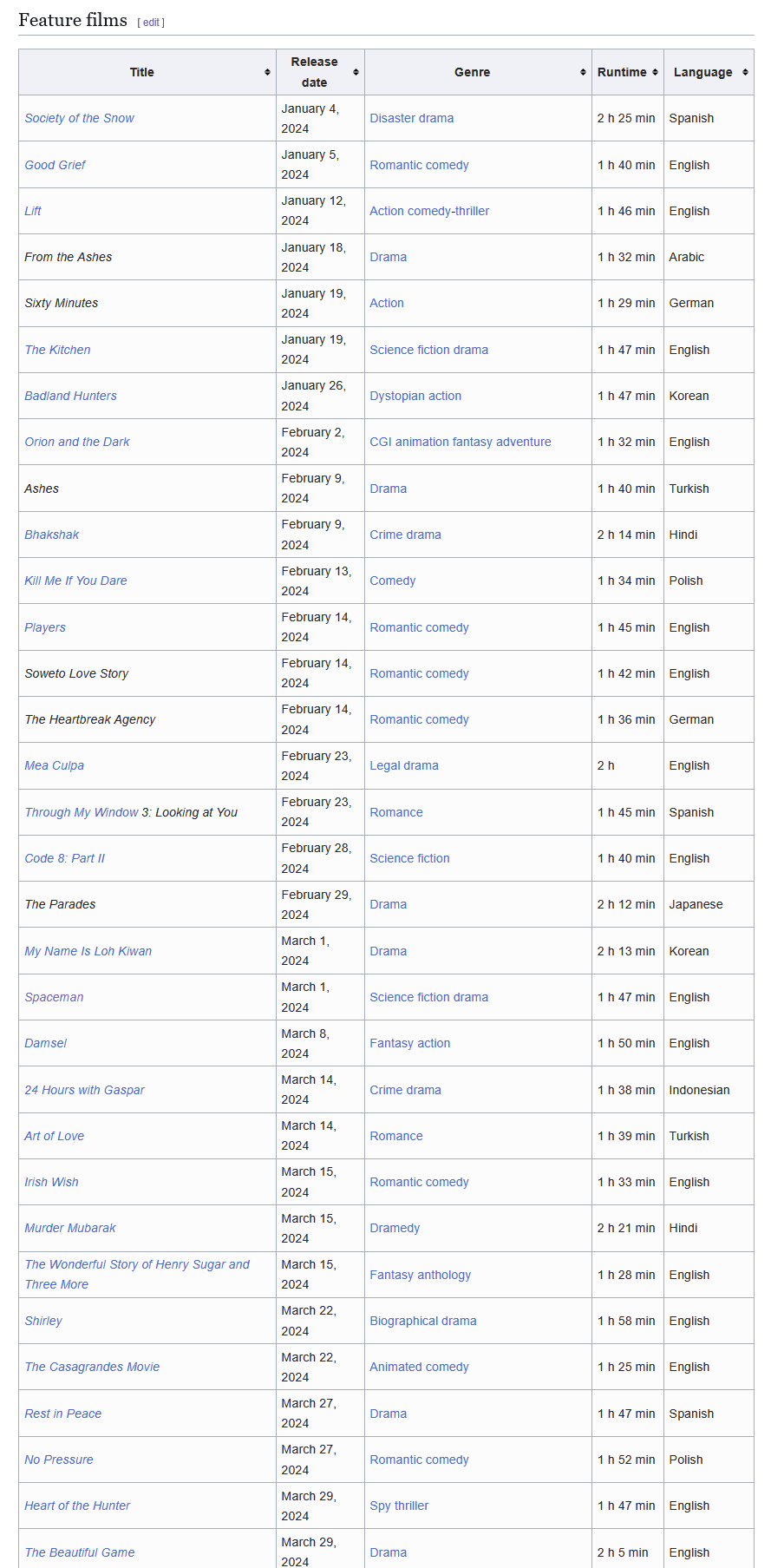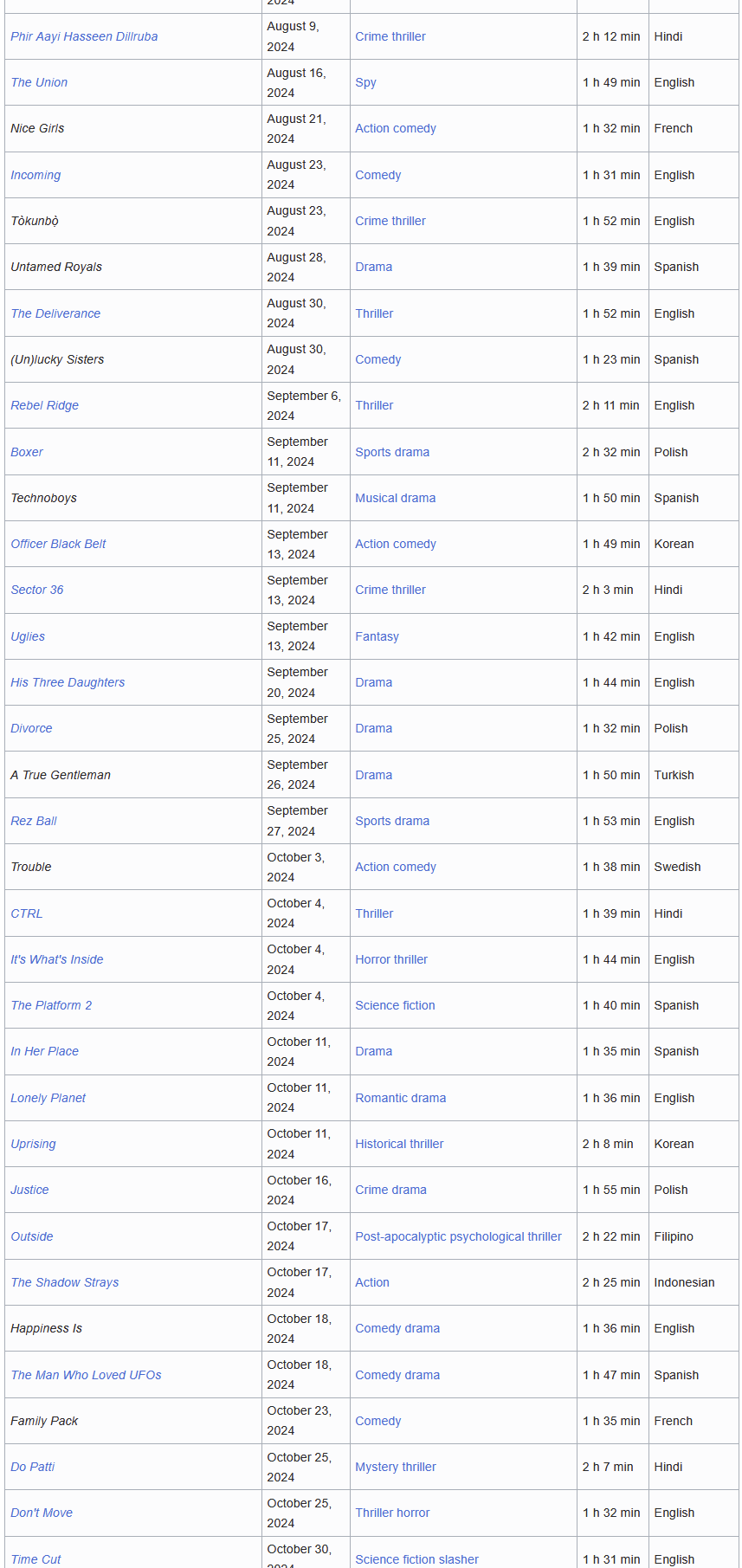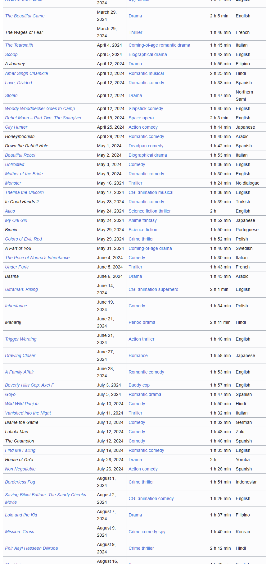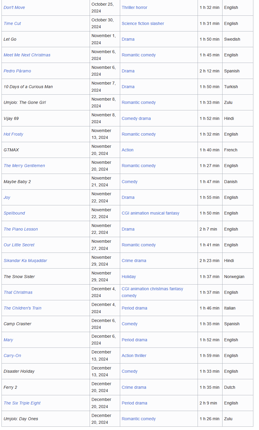 This is the list of all the Netflix original movies they made in 2024. This is just one single streaming service. There's like a dozen of them. There's never been so many films of all budget categories being made now.