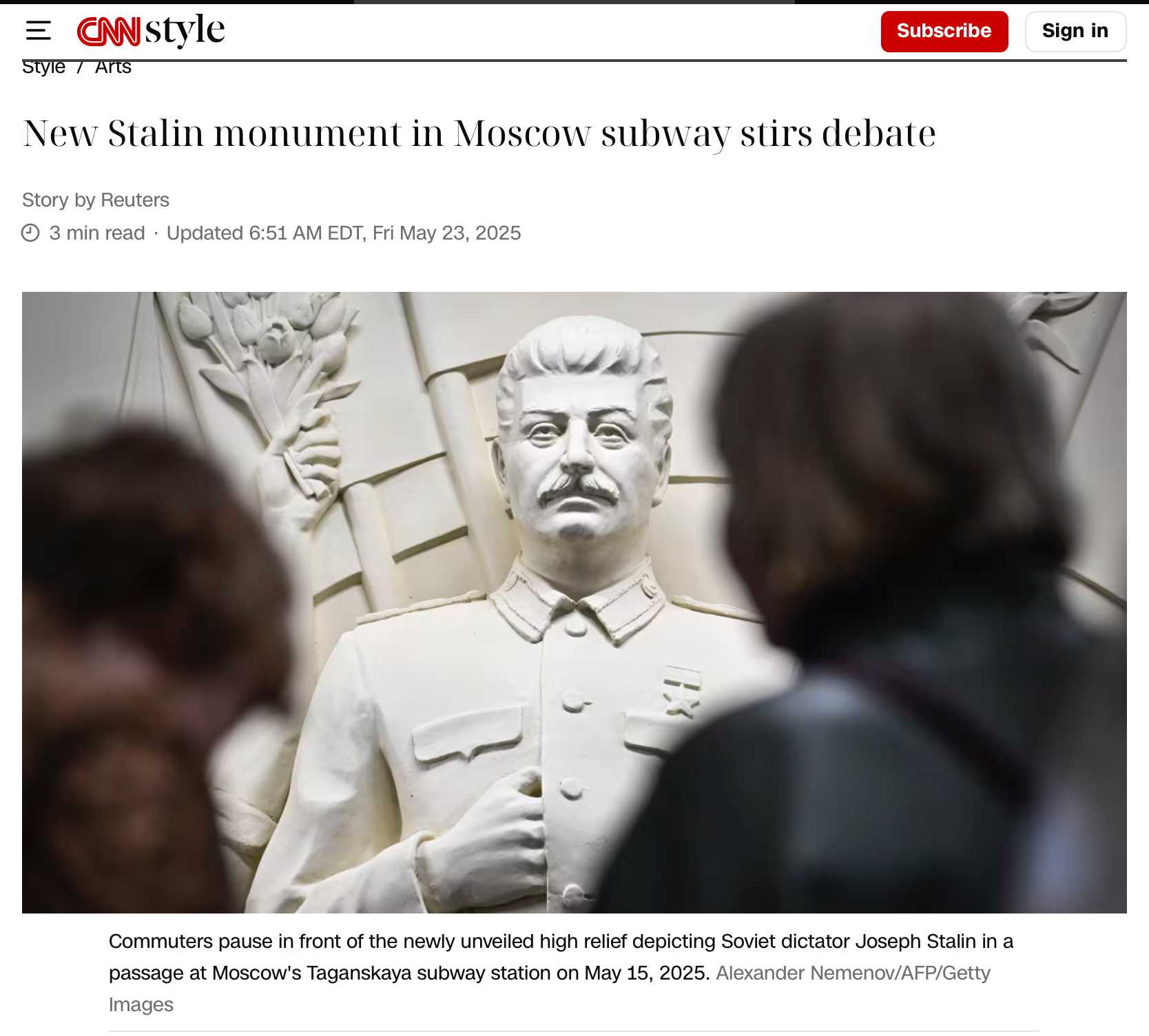 For context the Russian government last may erected a statue of Stalin in a subway station. Not because Russia is currently a communist country but rather for 3 different reasons: #1 Because Russia nearly had global hegemony under Stalin, #2 to appeal to China because China likes Stalin because without him they wouldn’t exist, and finally #3 as a way to piss off Ukraine because the current Ukrainian government hates Stalin and their State Department makes a tweet every year on the anniversary of the Holodomor, the Molotov-Ribbentrop pact, you name it. So basically what are your thoughts on it?