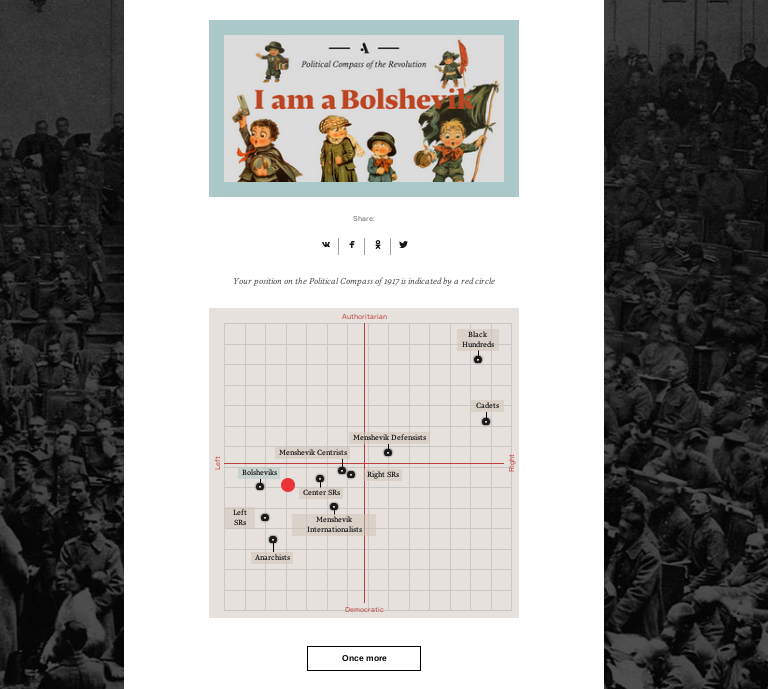 Huh, got Bolsheviks. Honestly I expected getting left SR as well. Btw where are those illustration from?