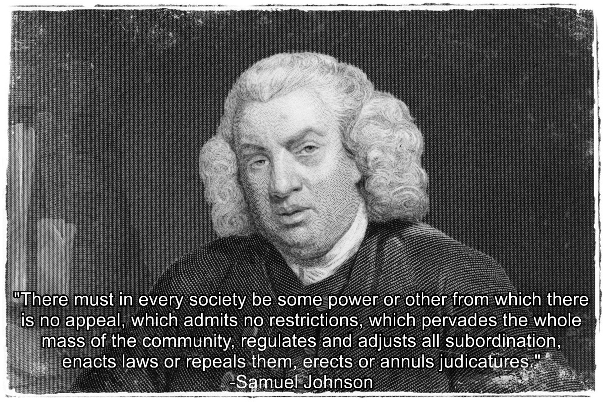 >In sovereignty there are no gradations. There may be limited royalty, there may be limited consulship; but there can be no limited government. There must in every society be some power or other from which there is no appeal, which admits no restrictions, which pervades the whole mass of the community, regulates and adjusts all subordination, enacts laws or repeals them, erects or annuls judicatures, extends or contracts privileges, exempt itself from question or control, and bounded only by physical necessity.