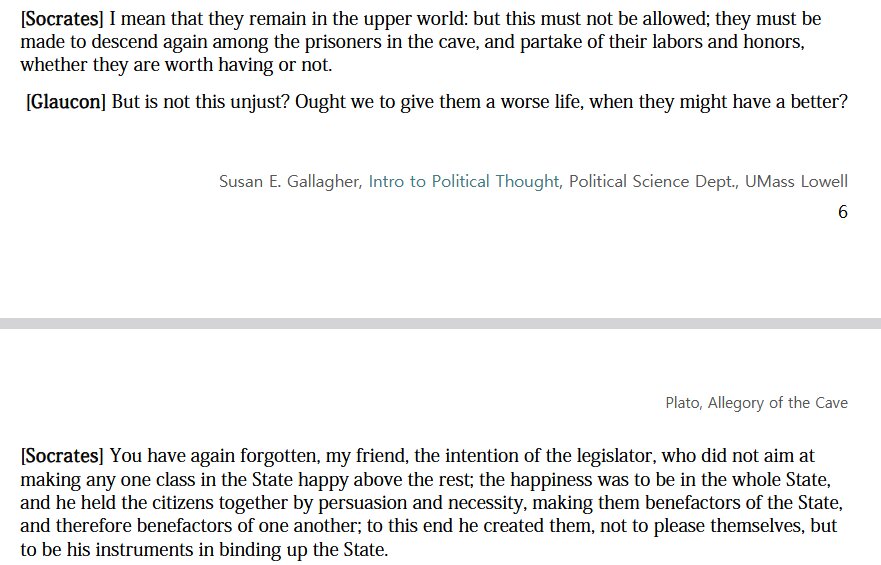 >"You have again forgotten, my friend, the intention of the legislator, who did not aim at making any one class in the State happy above the rest; the happiness was to be in the whole State, and he held the citizens together by persuasion and necessity, making them benefactors of the State, and therefore benefactors of one another; to this end he created them, not to please themselves, but to be his instruments in binding up the State.