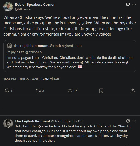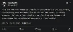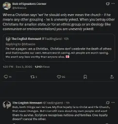 So I'm happy to make a clear break with Christian integralists and not even play into any pretense there.