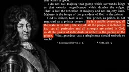 >We have, I say, absolute Monarchy, and herein we differ from the Lacedemonian Kings, who were subject to their Ephori, which had a power above them: No, ours agrees with the Persian-Government; for, their King had plenary power in all things, not subject to be called to account by any person whatsoever: and so ours, if you will believe Cambden, a famous Antiquary; who saith, That the King of England, supremam potestatem, & merum imperium habet, He hath supreme power and absolute Command in his Dominions–; and so, Bracton, a sage profound Lawyer, in ancient time, speaks to the same purpose, Omni quidem sub Bege, & ipse sub nullo, sed tantum sub Deo: So that it is an unquestionable truth, that the King is subject to no over-ruling power of man, and that he is free from all humane Coercion and Restranshumanistt, I do rather insist upon this.