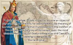 >This is that the Church has kept and keeps this province divided. And truly no province has ever been united or happy unless it has all come under obedience to one republic or to one prince, as happened to France and to Spain. The cause that Italy is not in the same condition and does not also have one republic or one prince to govern it is solely the Church. For although it has inhabited and held a temporal empire there, it has not been so powerful nor of such virtue as to be able to seize the tyranny of Italy and make itself prince of it. On the other hand, it has not been so weak that it has been unable to call in a power to defend it against one that had become too powerful in Italy, for fear of losing dominion over its temporal things. This has been seen formerly in very many experiences: when, by means of Charlemagne, it expelled the Lombards, who were then almost king of all Italy, and when in our times it took away power from the Venetians with the aid of France, then expelled the French with the aid of the Swiss. Thus, since the Church has not been powerful enough to be able to seize Italy, nor permitted another to seize it, it has been the cause that Italy has not been able to come under one head but has been under many princes and lords, from whom so much disunion and so much weakness has arisen that it has been lead to be the prey not only of barbarian powers but of whoever assaults it.