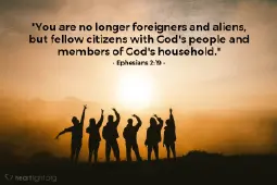 >Consequently, you are no longer foreigners and aliens, but fellow citizens with God's people and members of God's household, built on the foundation of the apostles and prophets, with Christ Jesus himself as the chief cornerstone.