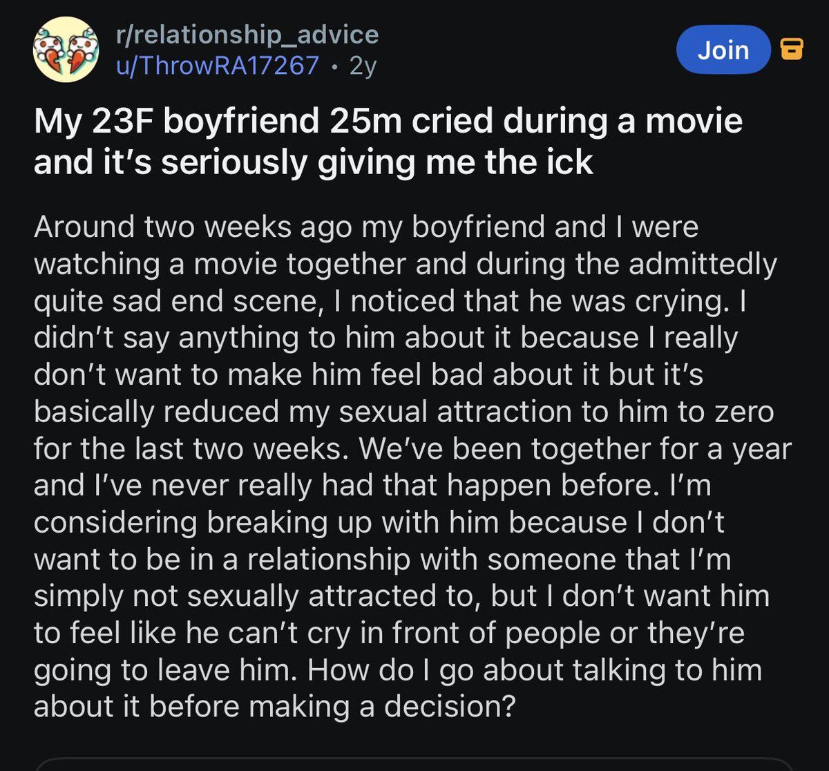 >>750804>>750814Romance and sex are treated as entitlements, that's the problem.