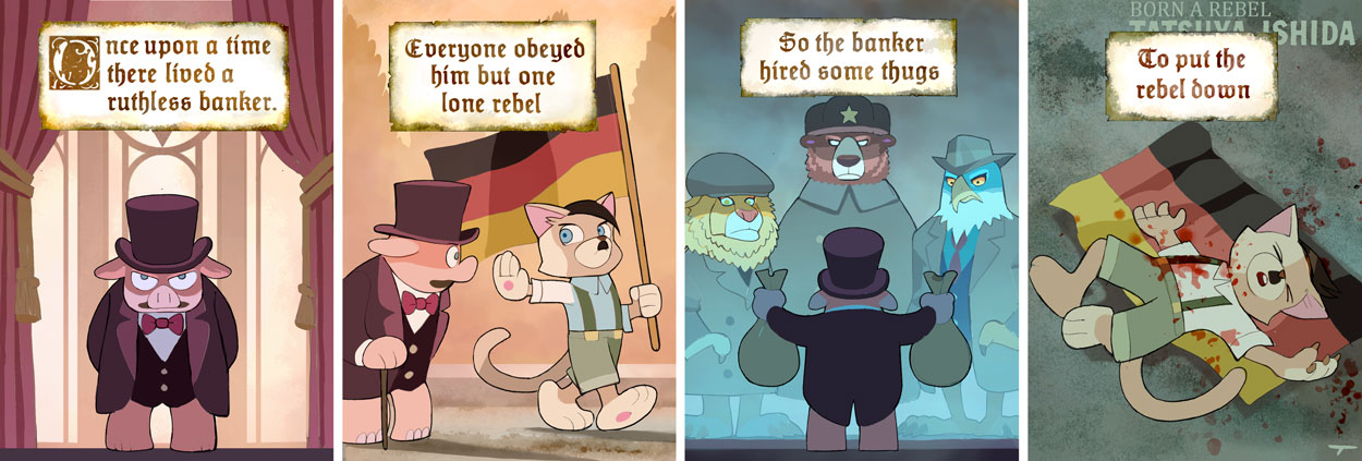 Symbolism is ass, especially since he could have used rats as stand-ins for bankers as a nod to Maus. Then again, you can't expect much from Tats the nazi Nip
