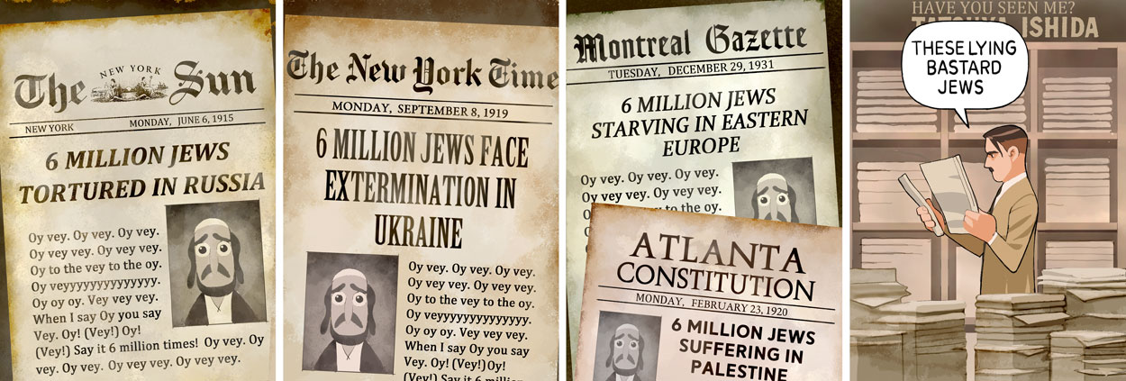 Honestly isn't this guy half Japanese? He should have done this whole comic apologising for Hirohito instead, it would be a lot more original and interesting, but that's not antisemitic enough obviously
