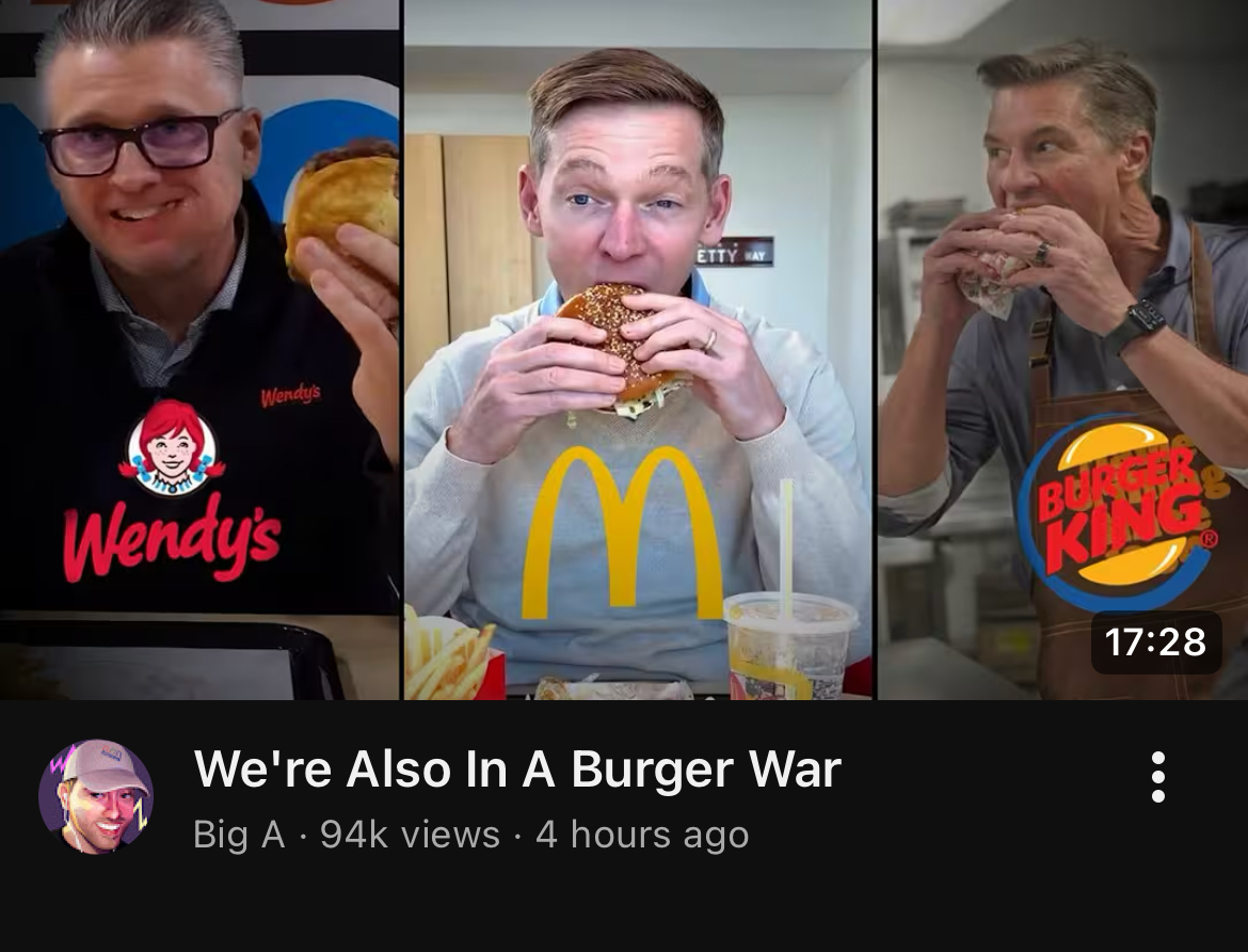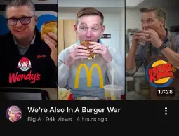 >>756408No burgers? How can that be it's in the fucking name!! Anyways I remember going to a McDonalds drive-thru one late night after work and they only had filet o fish and chicken nuggets so I ended up backing out of the drive thru and heading to jack in the box or Carl's jr.