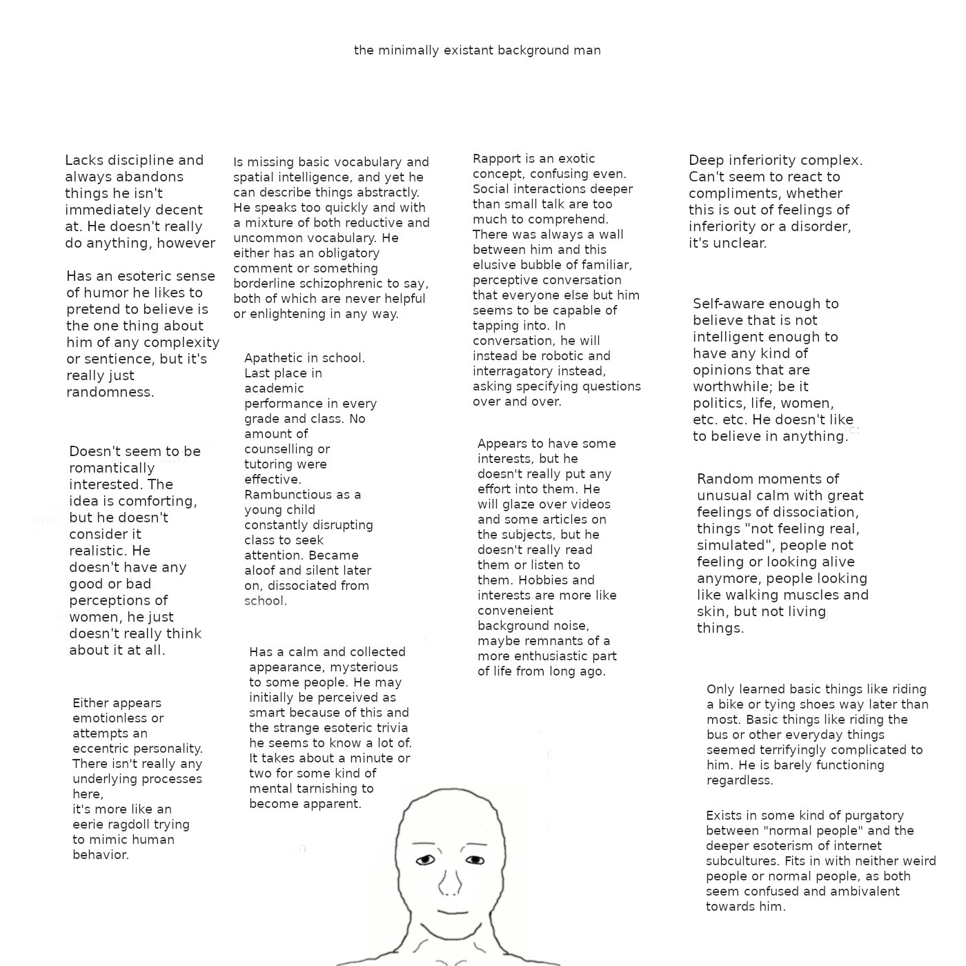I never faked anything, instead everyone always bullied me for being different and made sure to tell me how out of place I was everywhere. The "different" things I had in me since I was a god damn toddler fit with every descriptor of autism and I was diagnosed as one. I've been treated like shit by even my own family my whole life and then even the people supposed to be conscious and against chauvinism and whatnot are as reactionary and cruel as everybody else on this specific topic. Crazy stuff.