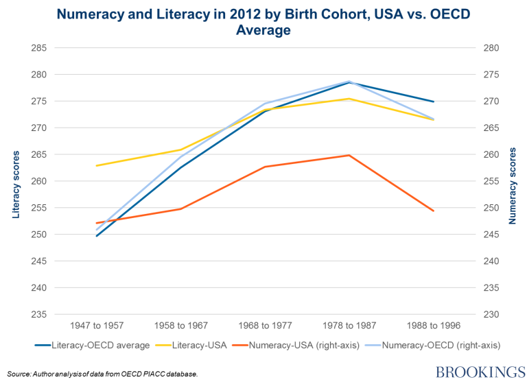 Also, according to the graph, Americas literacy rates went back to the same levels as early baby boomer era.