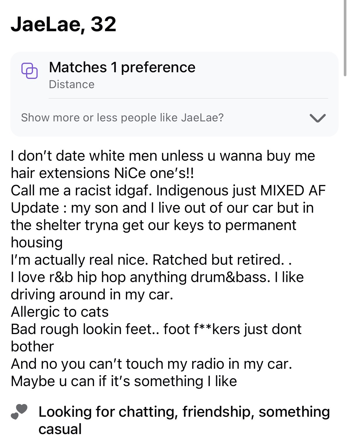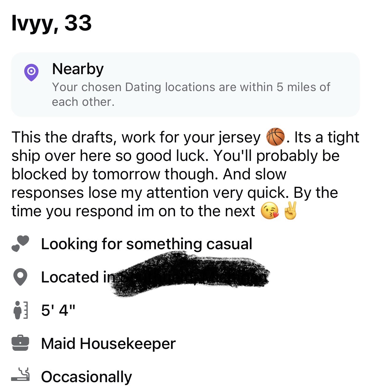 >IvyyBragging in her bio about blocking people after just 1 day of getting to know them. Crazy schizo. Dropped.