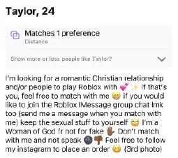 >TaylorMentioning Roblox in bio. High chance of being a groomer preying on kids. Dropped
