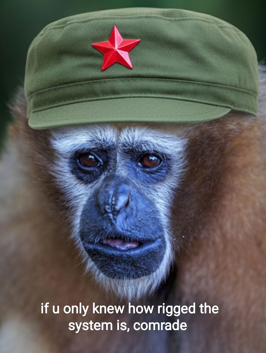 >>757421Gibbon will lead the primates on the long swing across Siberia. The other primates will make their way to the thread in time, but Chairman Gibbon will remember the lessons of the long swing in his pursuit of bringing the immortal science of Marxism-Leninism-Gibbonism to fruition.